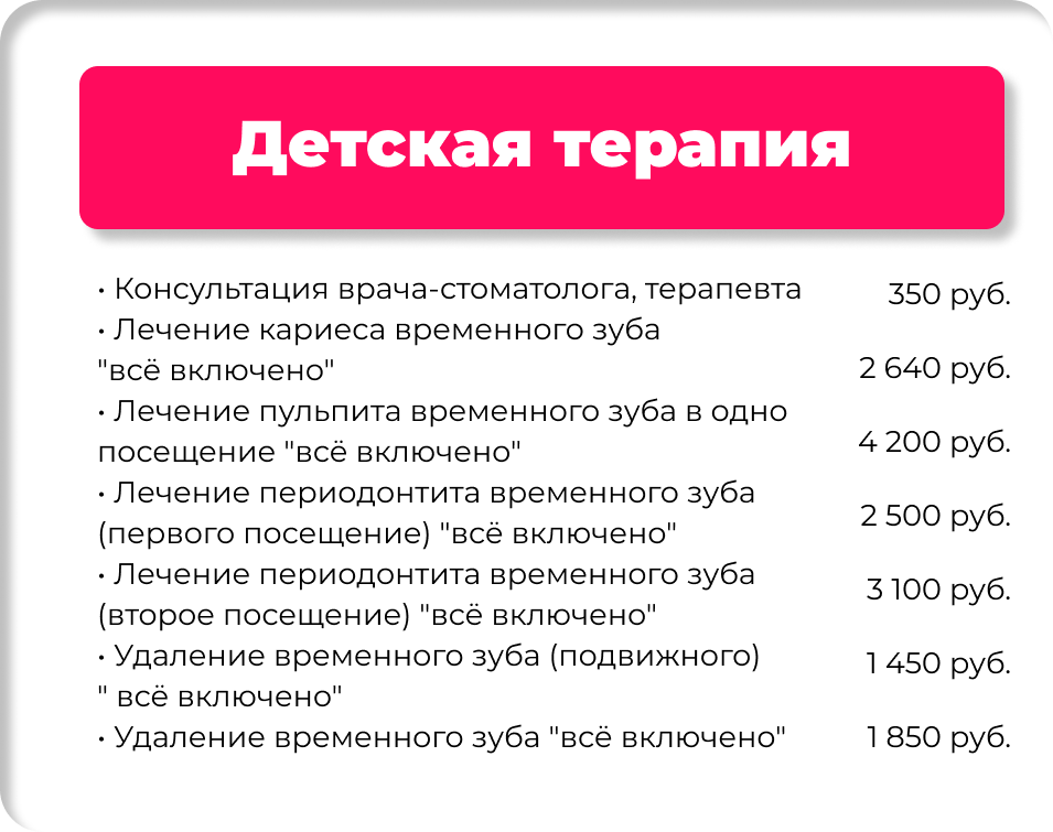 Обращаем Ваше внимание на то, что данный интернет-сайт носит исключительно информационный характер и ни при каких условиях не является публичной офертой, определяемой положениями ч. 2 ст. 437 Гражданского кодекса Российской Федерации. Для получения подробной информации о стоимости, наименовании и сроках оказания услуг, пожалуйста, обращайтесь по контактным телефонам. Конкретный перечень услуг и порядок их предоставления определяется в договоре оказания услуг, оформляемым между клиникой и пациентом